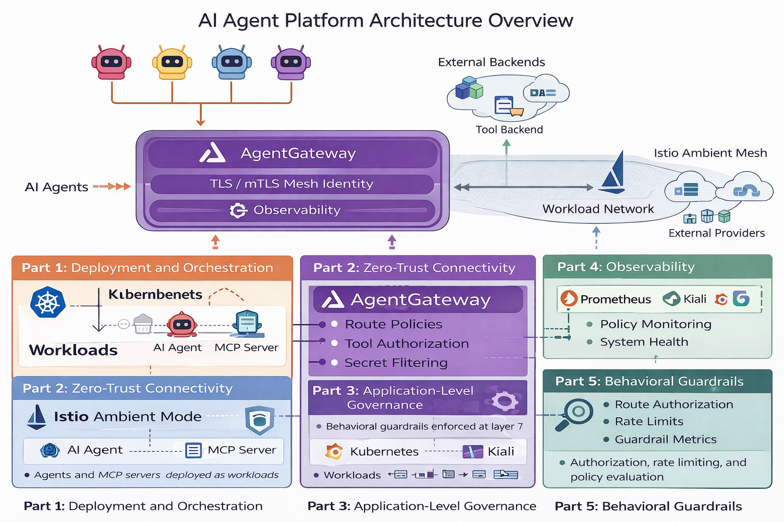 The objective is not to restrict what agents can do, but to ensure that autonomy operates within defined, measurable, and auditable boundaries. When identity, transport security, routing policy, observability, and behavioral enforcement are aligned, agents become operable infrastructure components rather than experimental scripts.